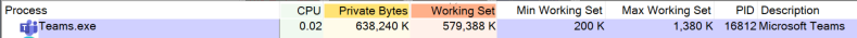 Process Explorer 실행 후 View -> Select Columns... -> Process memory 탭 -> Minimum Working, Max Working Set 을 클릭하면 아래와 같이 각 프로세스의 Min Working Set 값을 볼 수 있고 예제 캡쳐는 Teams.exe 프로세스에 설정된 Min Working Set 값이 200 K 로 설정된 것을 보여줍니다.