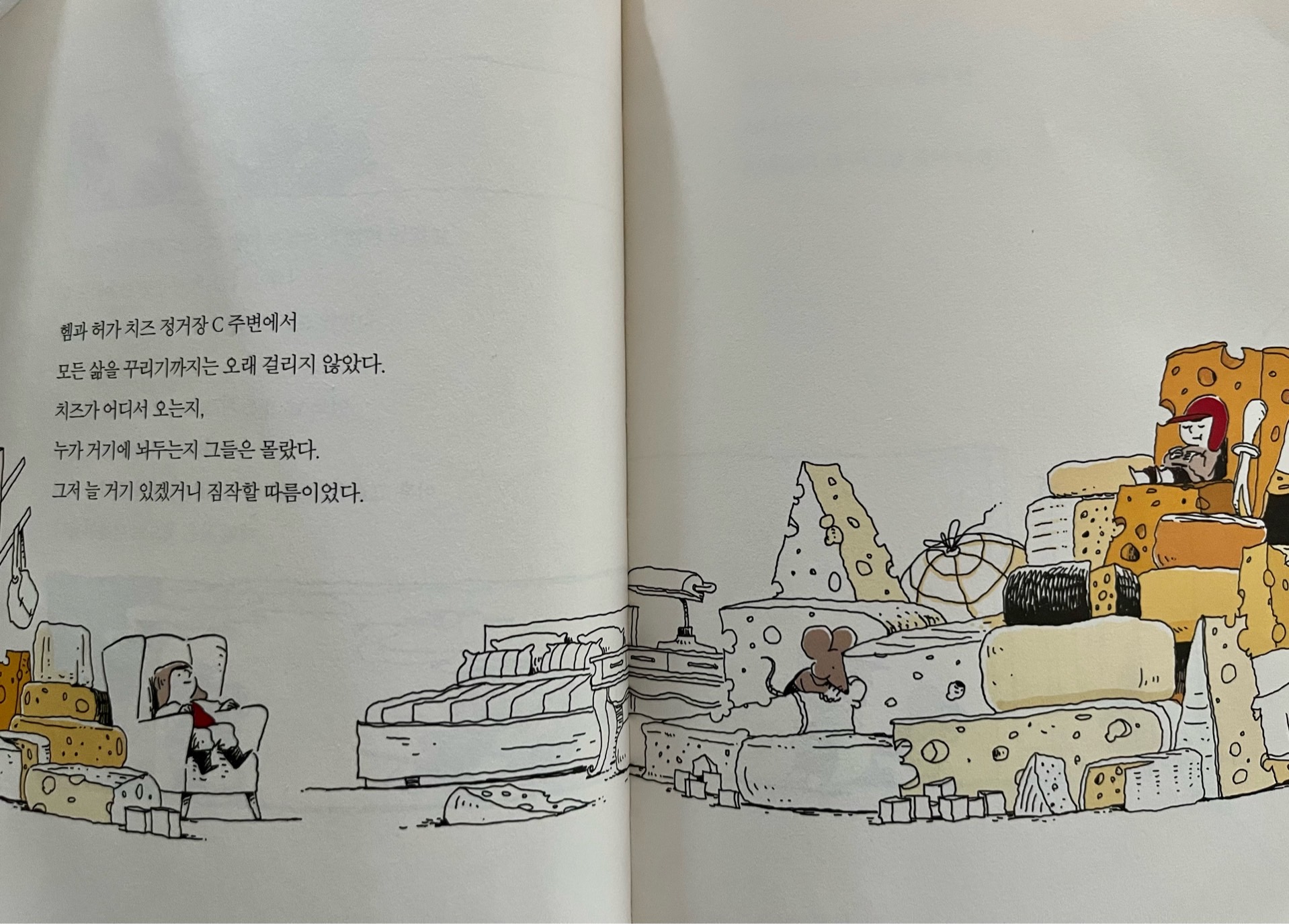 어린 시절(?) 읽었던 <<누가 내 치즈를 옮겼을까?>>를 지금 처음 읽었다면 그 때의 나의 생각과 지금의 나의 생각은 어떻게 다른지 비교해 보고 싶은 생각이 듭니다. 어린 시절 나는 어떤 캐릭터였을까? 아마도 헴? 지금과 달랐을까?