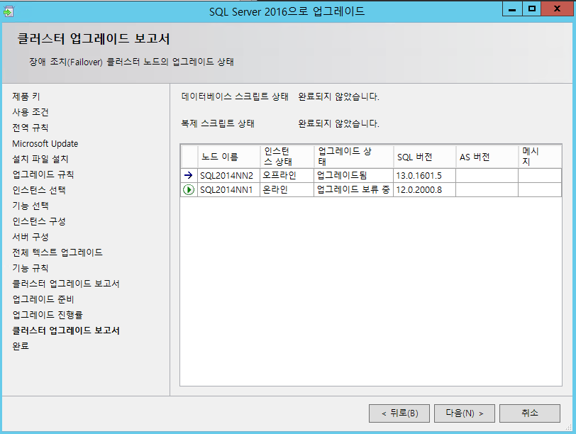 SQL Server 2014 클러스터 인스턴스를 2016 버전으로 업그레이드